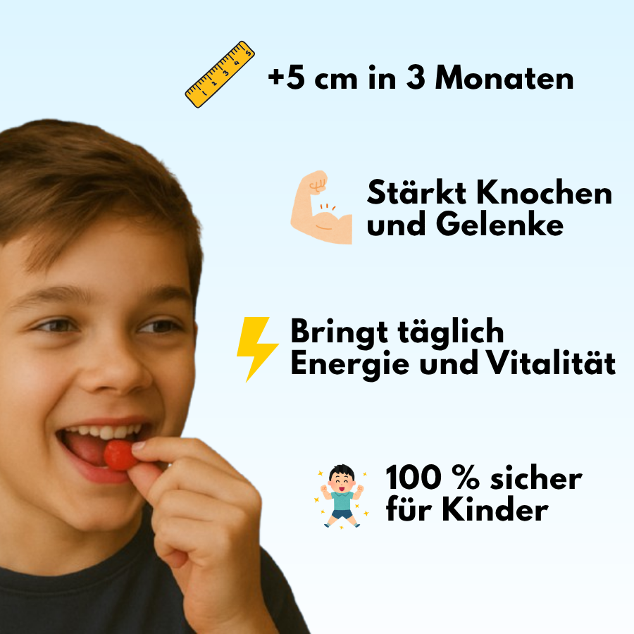 Die Gummies sind für Kinder ab 5 Jahren geeignet. Sie wurden entwickelt, um das natürliche Wachstum von Kindern und Jugendlichen sicher zu unterstützen.